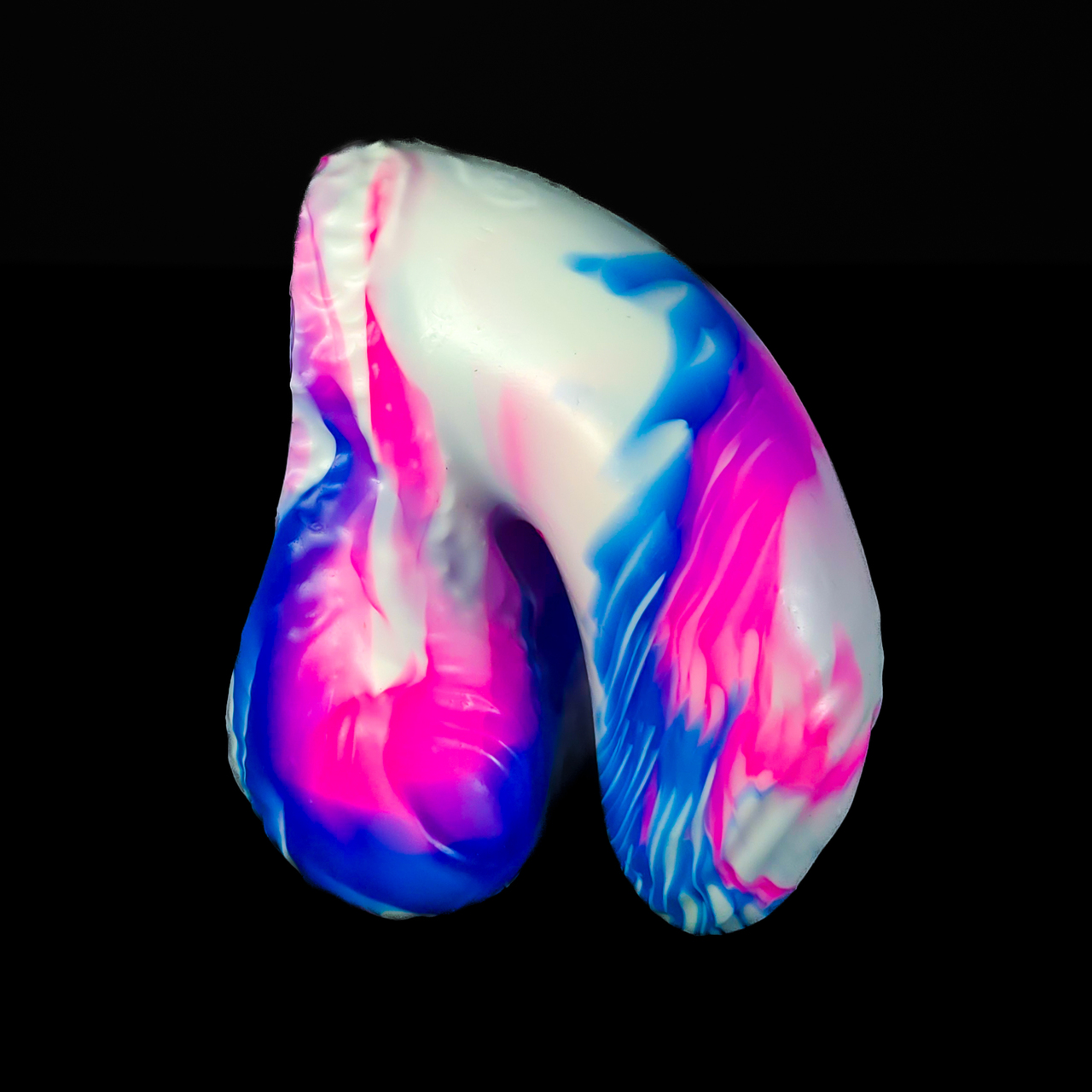 Direct from our good friends at Squidly Co., we present the Mr Peacock packer! Firmer than your standard soft packer, Mr Peacock features a bulge-centric design that pairs perfectly with Mutiny Custom Clothing's packer friendly designs! Squidly Co. has curated a very special collection of whimsical and exciting designs for us including a UV reactive tropical trans pride swirl option - exclusive to and only available through Mutiny Custom Clothing!